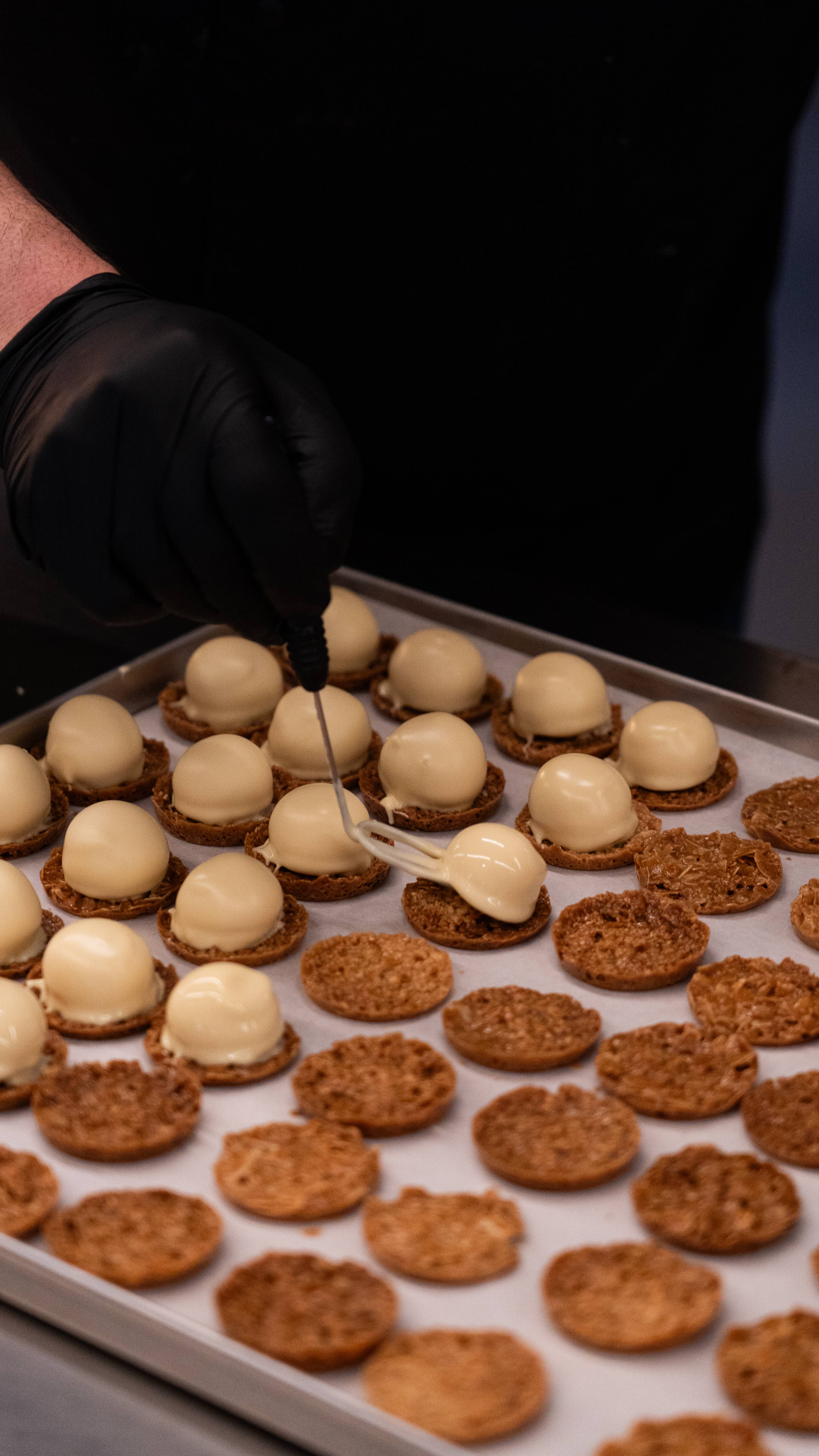 Home-baked Florentine cookies with a white chocolate truffle on top